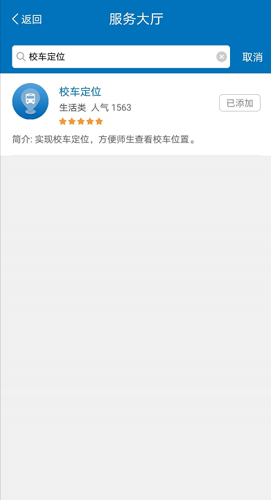 1、 登录手机端“i大工”APP,在“我的服务”-“前往服务大厅,添加更多”-搜索“校车定位”。