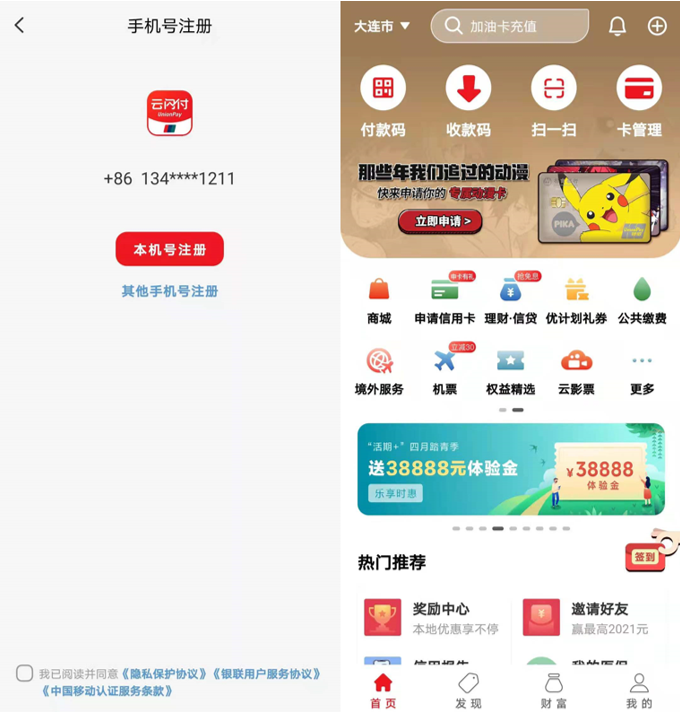 通过手机应用平台搜索云闪付下载安装。在云闪付APP首页的右下角,点击“我的”之后进行注册。注册成功后即可正常登录。点击右上方的卡管理,进行银行卡的绑定,建议绑定建行借记卡,可以参加大工师生专享消费立减活动。(2021年4月21日至5月21日,我校师生利用云闪付APP绑定建行卡进行充值、消费和缴费满2元可享受优惠活动,单用户每日可享受2次优惠,未来也将持续推出其他优惠活动)
