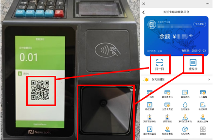 方式2:进入玉兰卡移动服务平台-点击“扫一扫”,扫描POS机上的二维码进行支付。